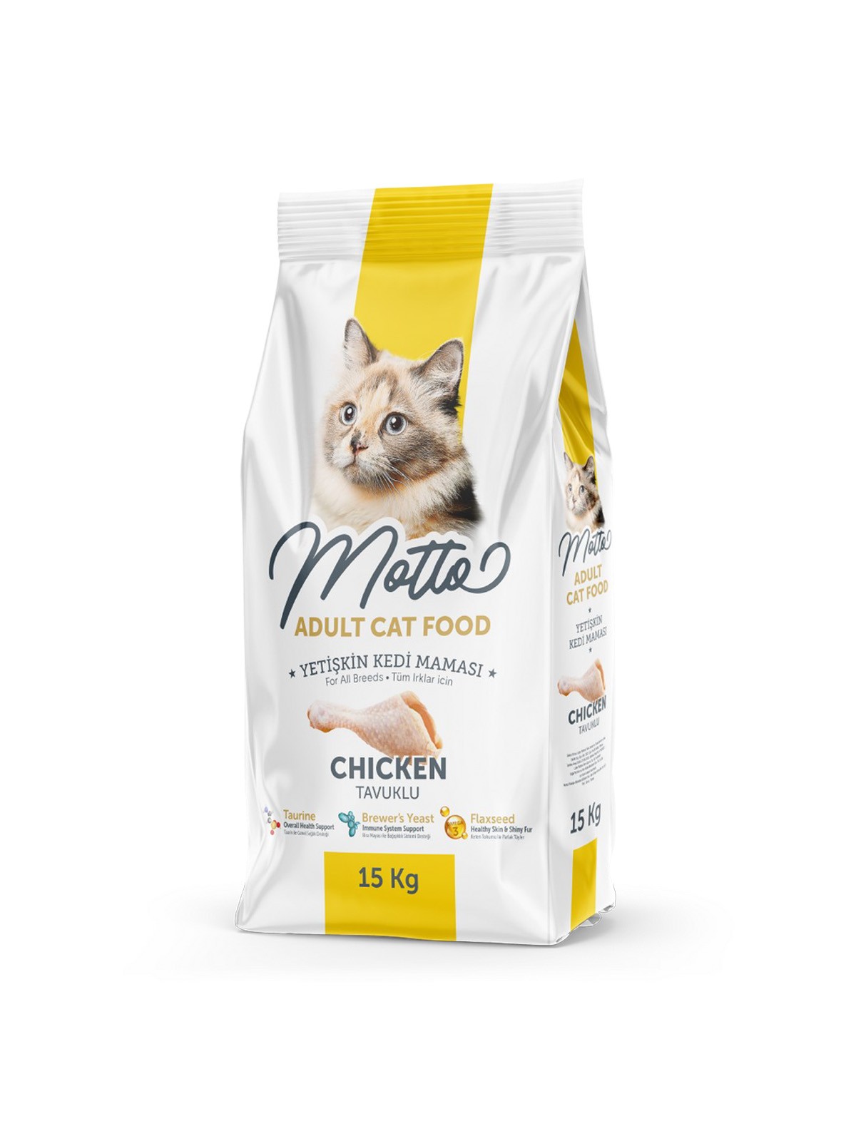 1 ile 7 yaş arası yetişkin kedilerin beslenme ihtiyaçlarına özel olarak formüle edilmiş, tavuk aromalı kuru mama