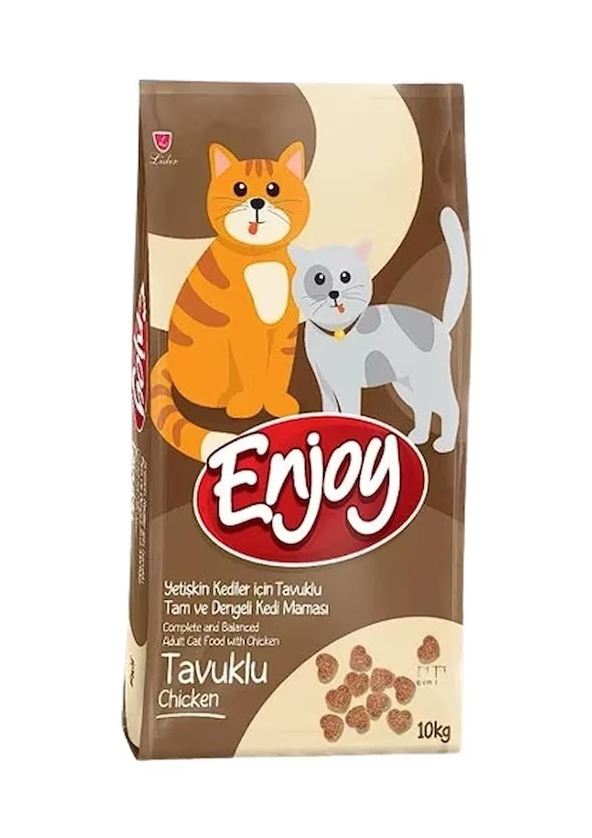 Enjoy Tavuklu Yetişkin Kedi Maması, 1 yaş ve üzeri kedilerin günlük besin ihtiyaçlarını karşılamaya yardımcı olacak şekilde formüle edilmiş tam ve dengeli bir yetişkin kedi mamasıdır. İşlenmiş tavuk proteini (%25) ile yüksek protein desteği sunar; kas kütlesinin korunmasına ve günlük enerji ihtiyacının karşılanmasına yardımcı olur. Lifli yapısı sindirim sistemini destekler ve kilo kontrolüne katkı sağlar.